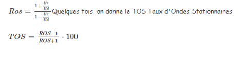Le rapport entre l’impédance Ze de l’émetteur ou du récepteur et l’impédance Za de l’antenne est appelé Rapport d’Onde Stationnaire: