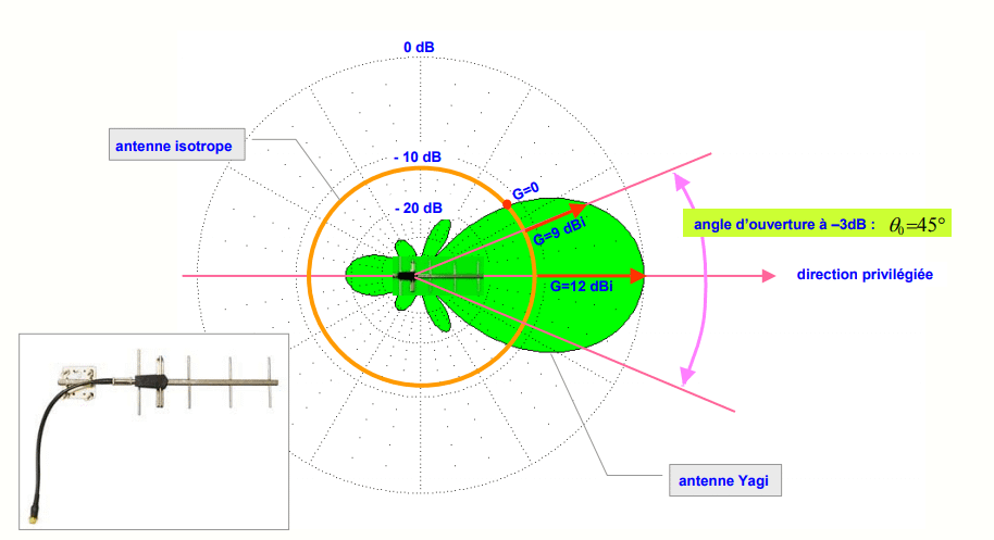 - une antenne directive a un gain G positif par rapport à une antenne isotrope dans la direction privilégiée