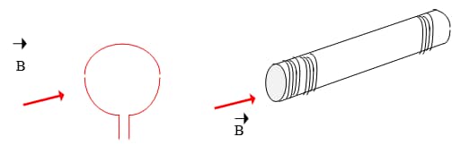 Toutes les antennes précédentes utilisent le champ électrique. En réception , le champ magnétique est souvent utilisé, car cela permet de réaliser un capteur très directif; nous savons , en effet, qu’un champ magnétique crée un flux magnétique au travers d’un circuit et que ce flux est maximal lorsque cette spire est perpendiculaire au champ B; aux bornes de la spire, la force électromotrice induite passe alors par un maximum (elle est nulle si la spire est parallèle à B). Comme le champ magnétique est très faible, il faut un grand nombre de spires bobinées sur un cadre en ferrite, ce qui constitue » la ferrite » d’un poste portatif, ou peu de spires mais de grandes surfaces: cadre « gonio ».